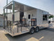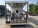 This 8.5' x 22' porch style concession trailer offers a 10' porch area, 12' kitchen area, 8' commercial grease hood, 5' concession window, hand sink, 3 compartment sink, a/c heat unit, and so much more! Check out the description below to see more information!!