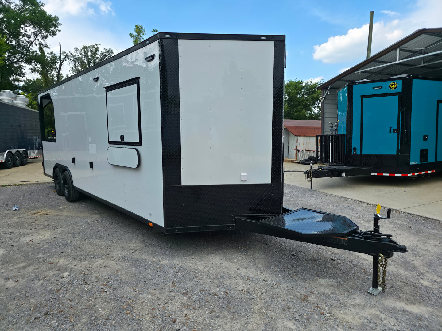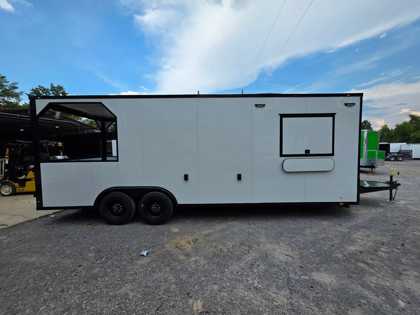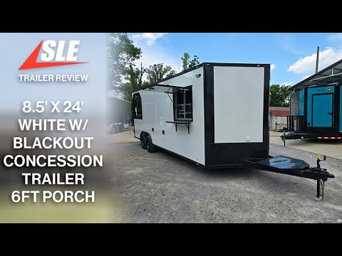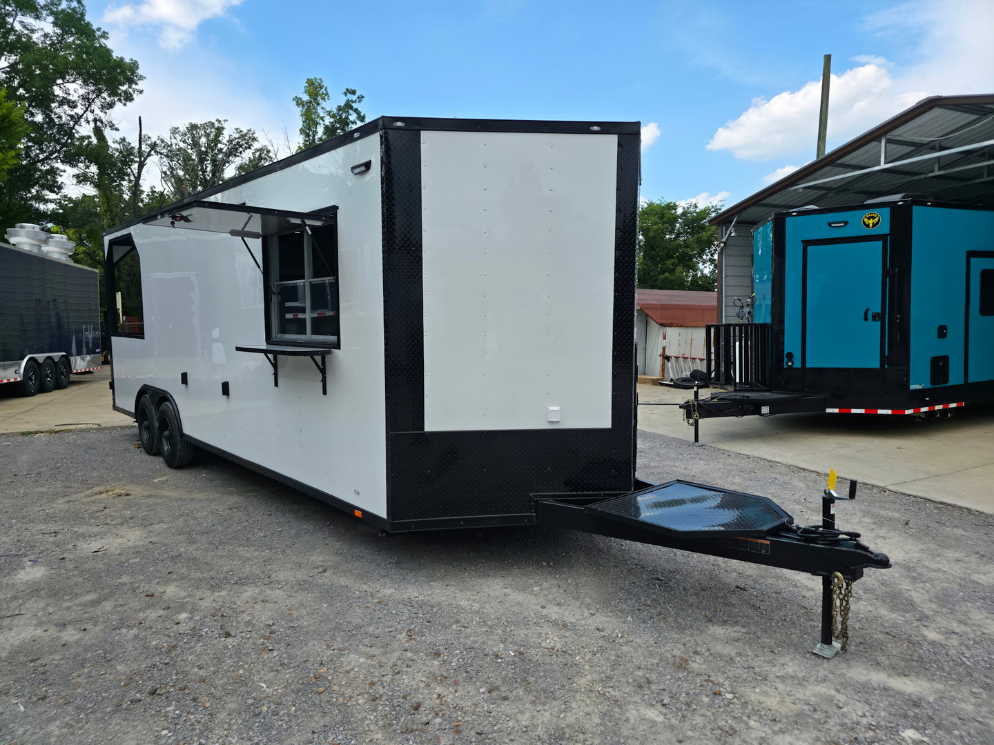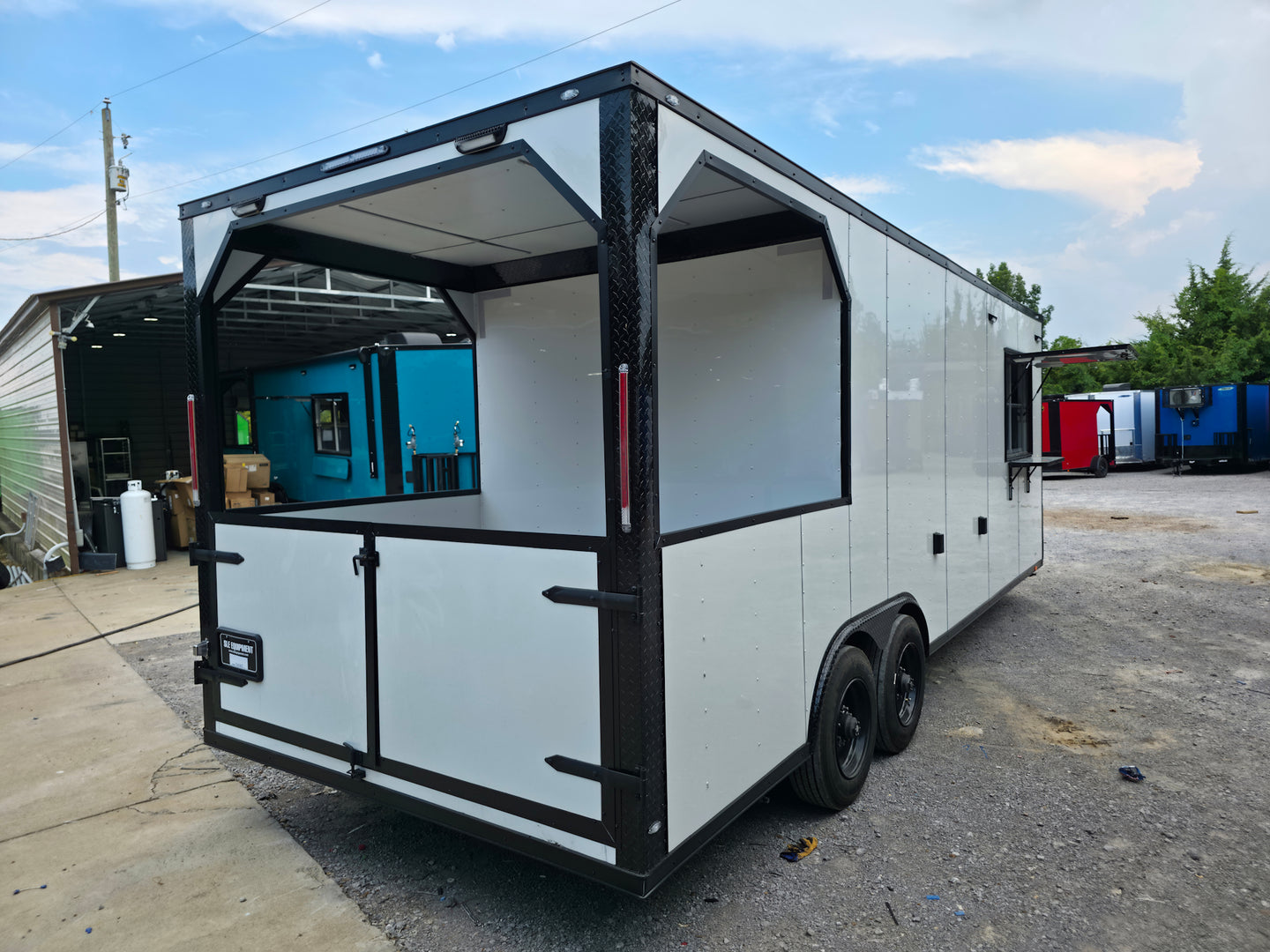 8.5' X 24' White With Black Out Concession Trailer With 6ft Porch