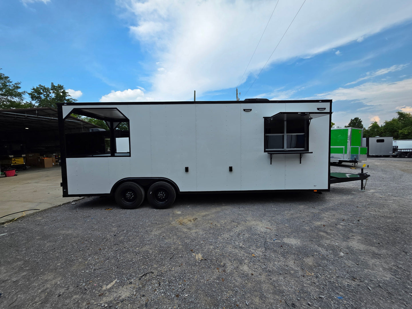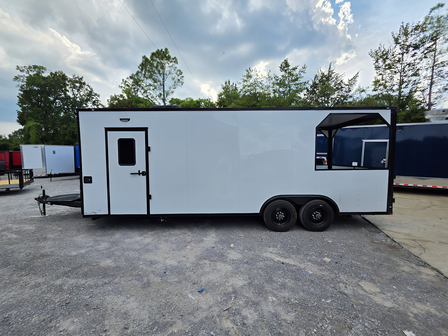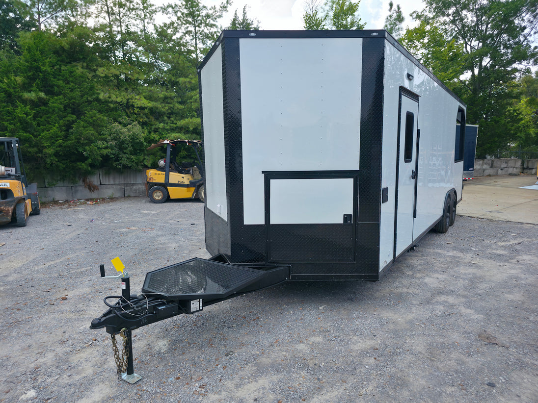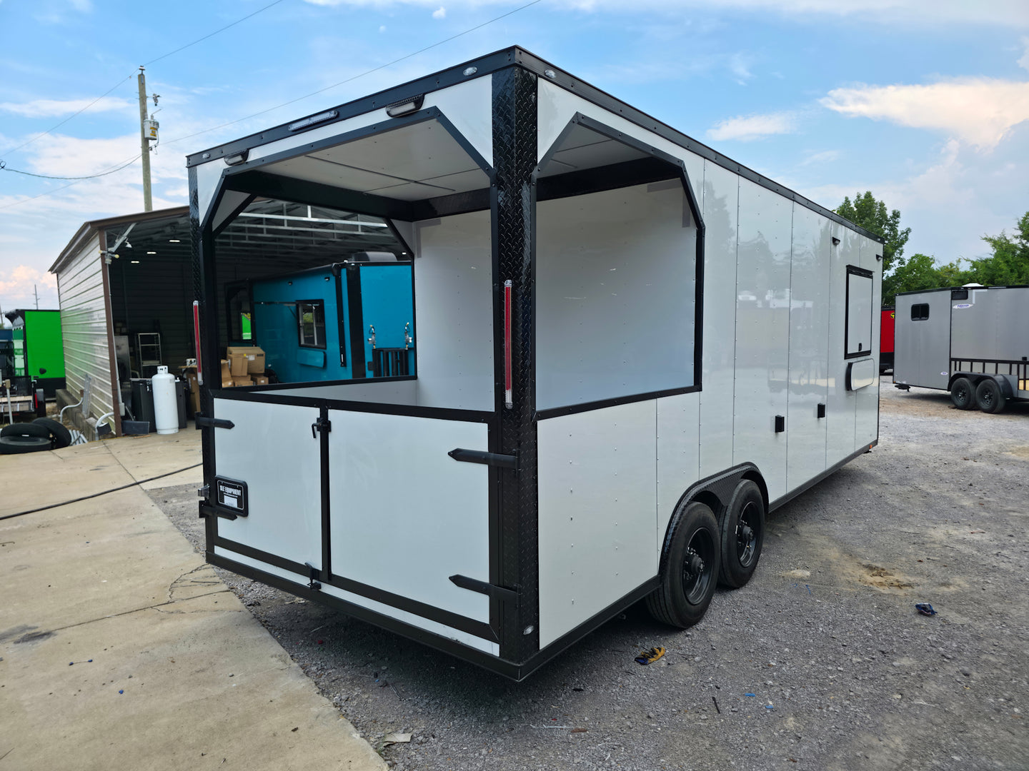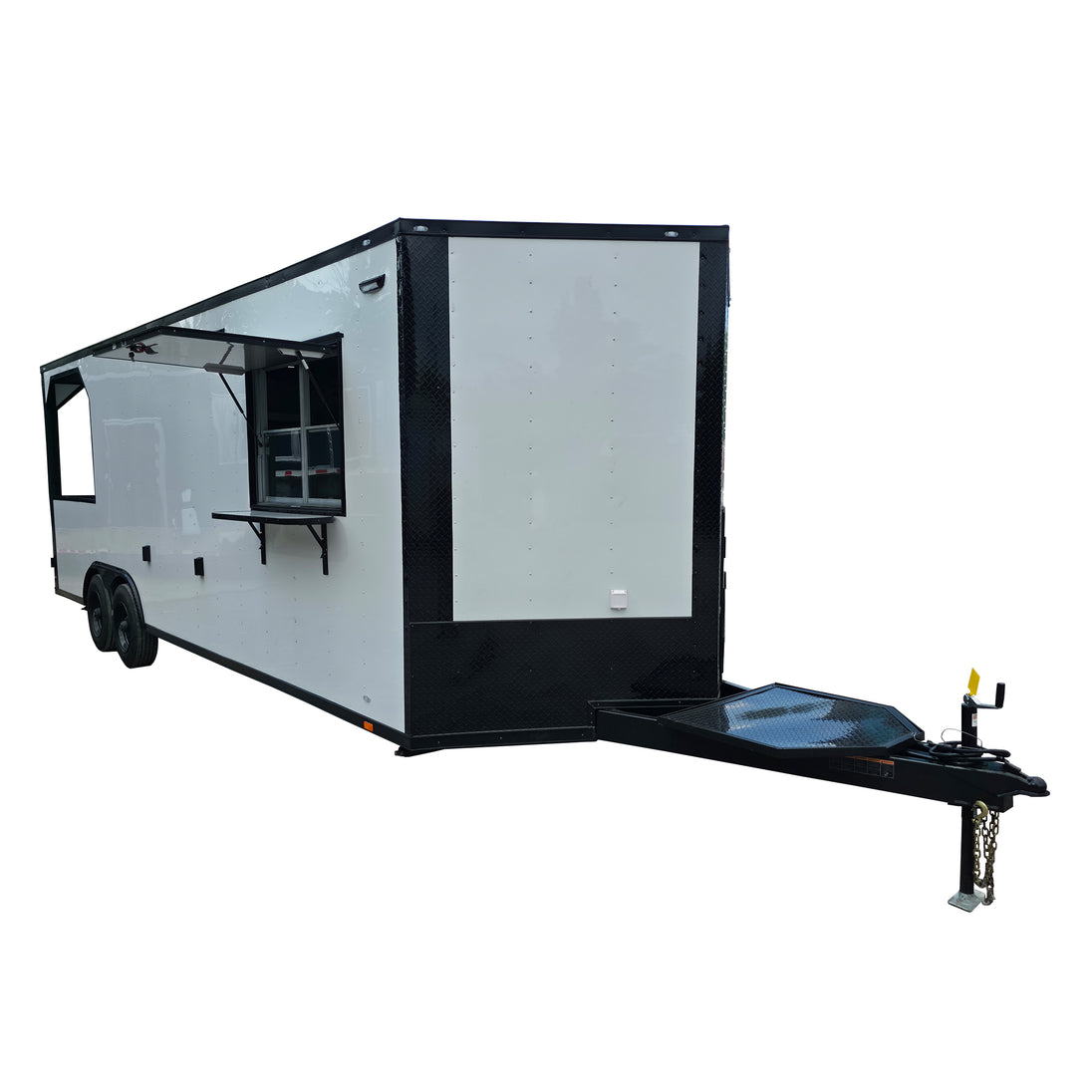 8.5' X 24' White With Black Out Concession Trailer With 6ft Porch