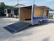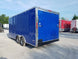 This trailer was designed as a gaming trailer, 8.5 wide and an 18 foot long cobalt blue in color and steel wheels.