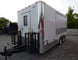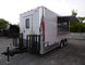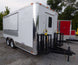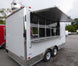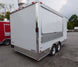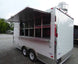 Concession trailer White 8.5 X 16 with (2) 4'x10' concession windows, 4' commercial grease hood, removable tongue, and (2) 100 lb propane cages.