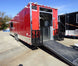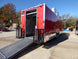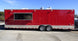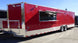 Concession trailer red 8.5 x 30 with 13' commercial grease hood, (2) heat and ac units, dual 7000 lb axles with brakes, rear ramp door, 8' concession window, and stainless steel counter tops.
