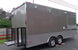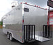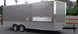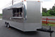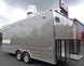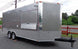 8.5' x 20' custom concession trailer in pewter and includes a 10 ft commercial grease hood, you can serve from either side of the trailer, extra large sinks, semi screwless exterior perfect for trailer wraps.