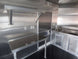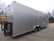 This 28' custom concession features a 8' commercial grease hood, stainless steel countertops, black ATP flooring, and a 100 amp electrical package.