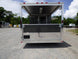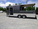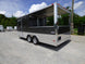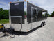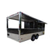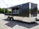 This concession trailer has black exterior and a 8.5' by 20 ft measurement. Features 10' porch area. Please call 615-641-7720 for build time