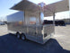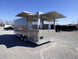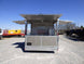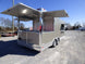 This concession trailer has a pewter exterior and has a 8.5 by 20' ft measurement. Features a flip up counter outside the window. Please call 615-641-7720 for build time