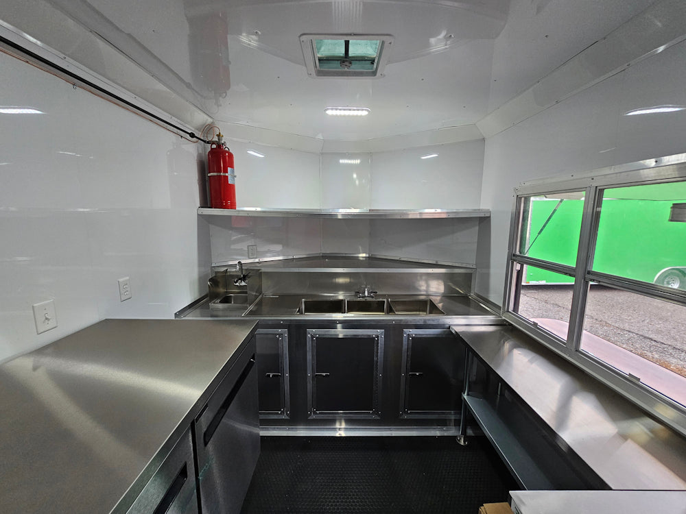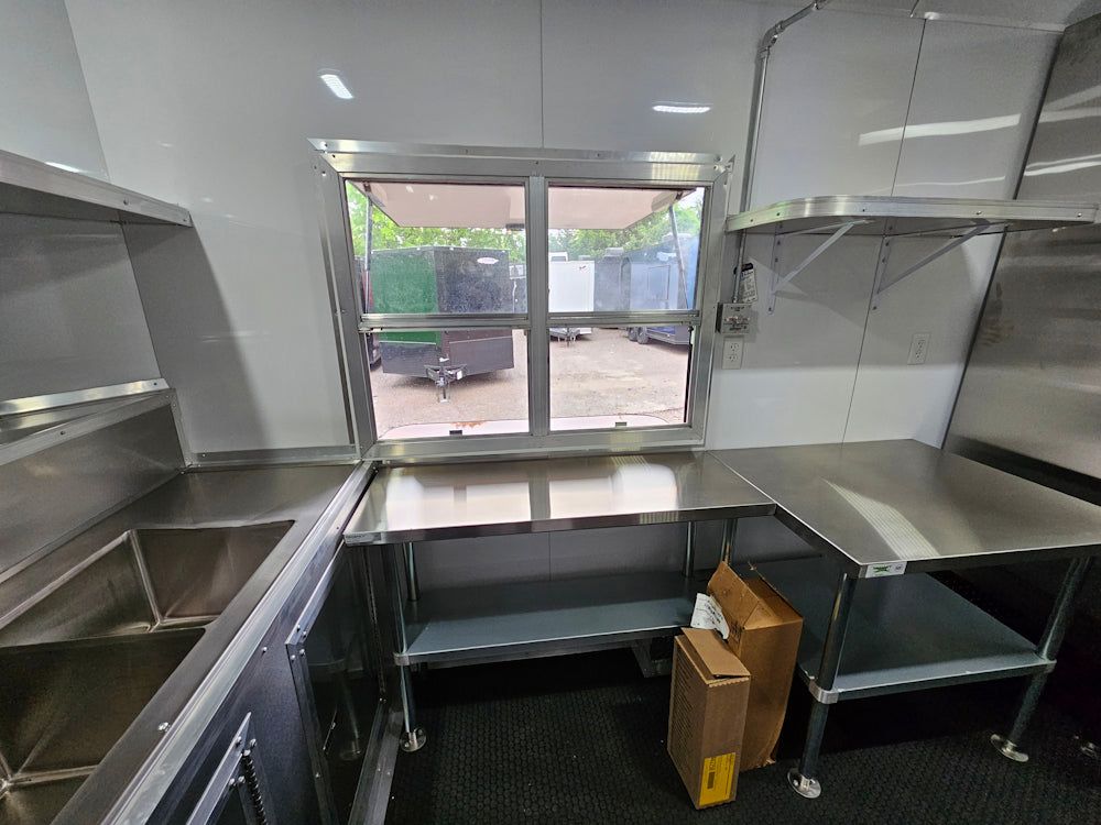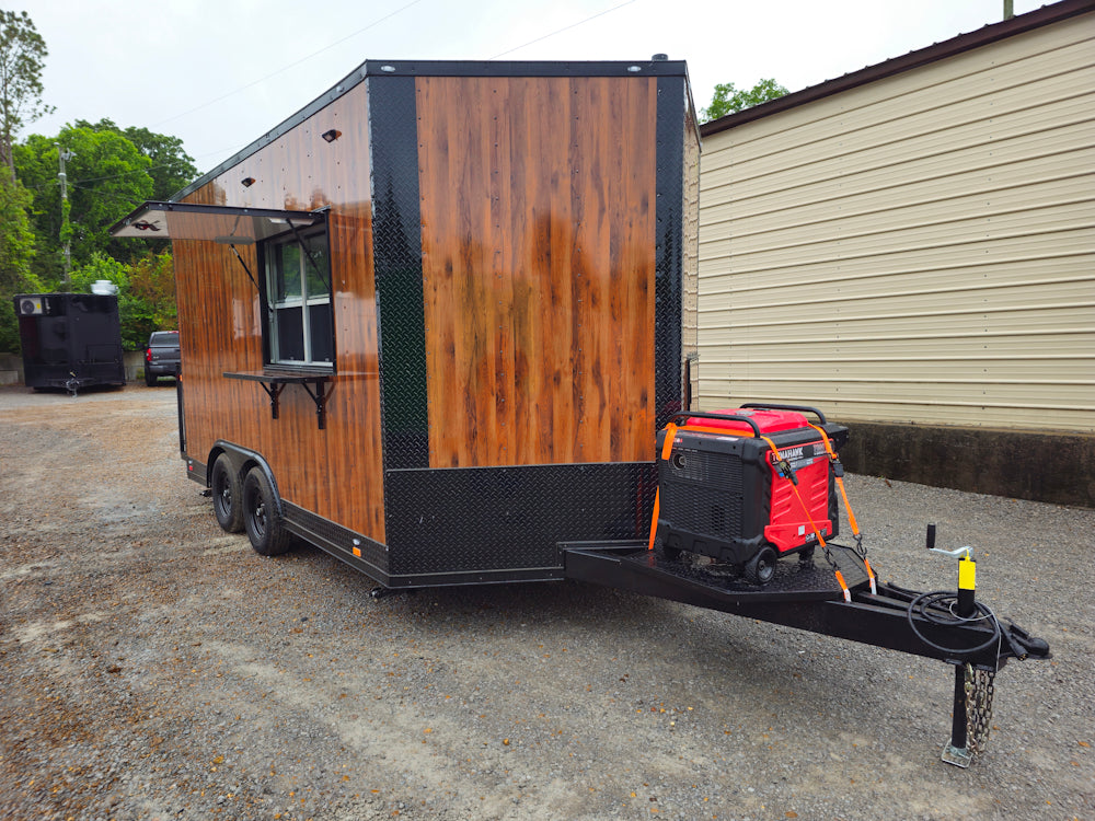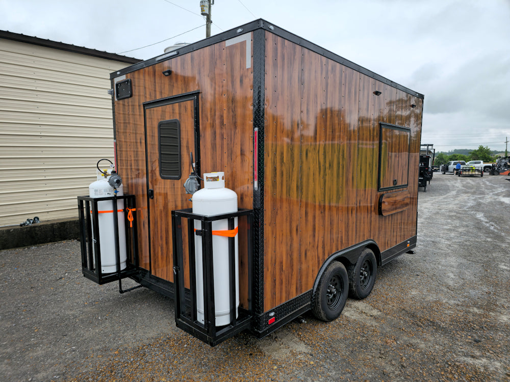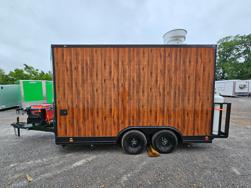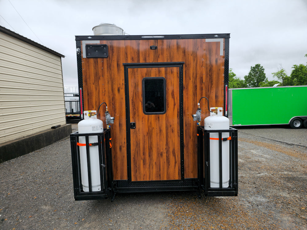This 8.5' x 14' Wood Grain Concession Trailer blends rustic charm with professional-grade functionality, perfect for food festivals, events, and mobile catering. It features a fully equipped kitchen with premium appliances, a fire suppression system, commercial sink package, and propane setup—all in a compact, easy-to-tow frame. With its eye-catching wood grain finish, insulated interior, and ample workspace, it’s built to impress and perform.