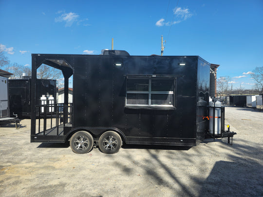 8.5' x 16' Black BBQ Porch Concession Food Trailer With Appliances