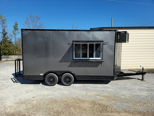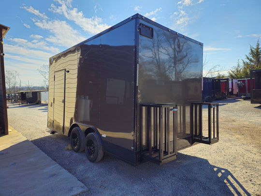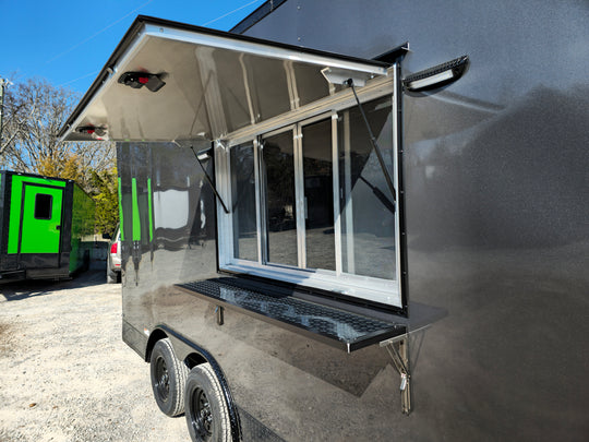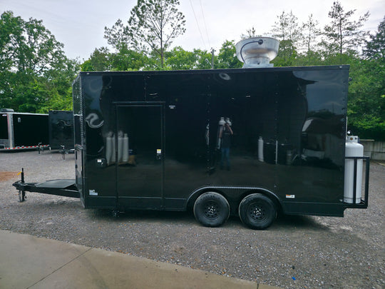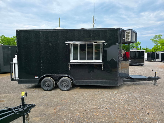 8.5' X 16' Elite Concession Trailer Black W/ Blackout Equipped