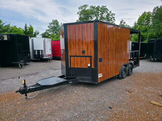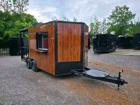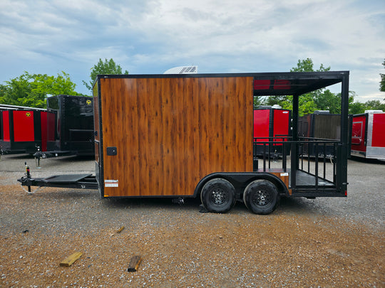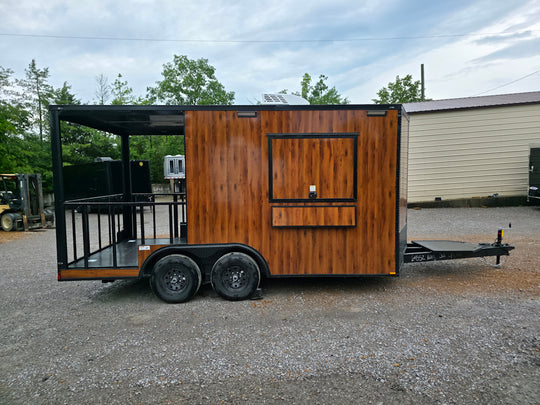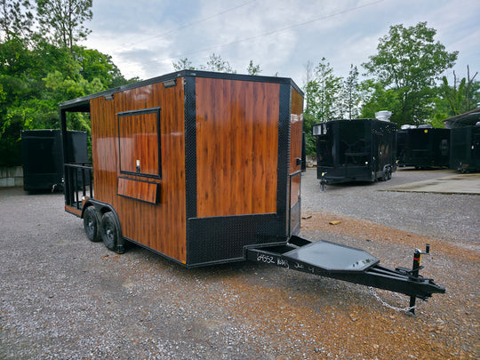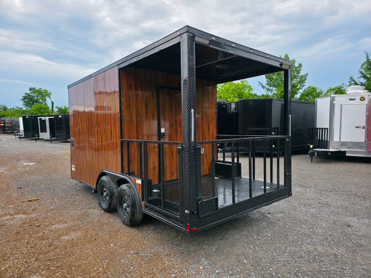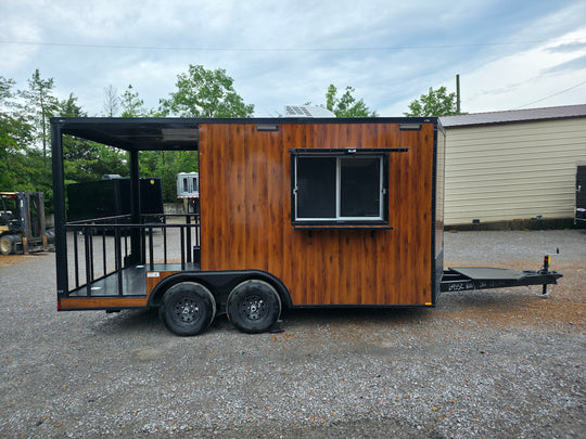 8.5' X 16' Elite Concession Trailer Woodgrain W/6' Porch Event Catering