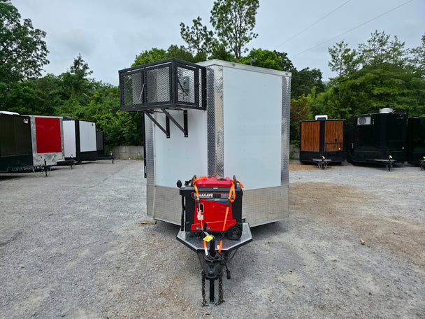 8.5' X 24' White Concession Trailer and Toy Hauler With 11 ft BBQ Porch
