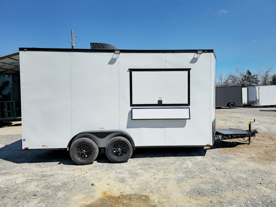 7' X 14' White W/ Blackout Concession Trailer Event Catering