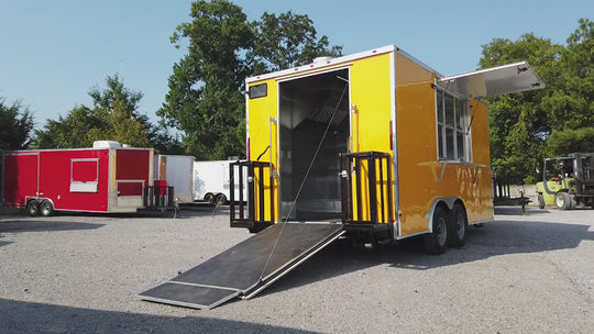 8.5' x 16' Yellow Concession Food V-Nose Trailer