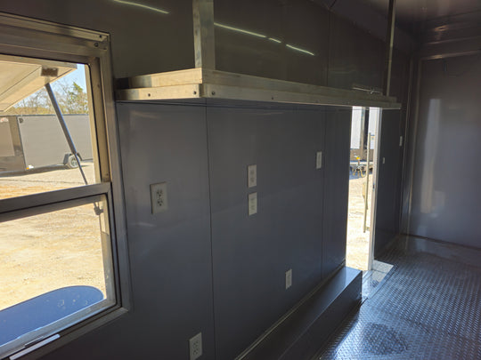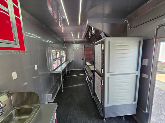 8.5 x 22 Red V-Nose BBQ Porch Concession with Blackout Trim Package