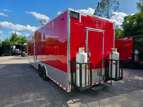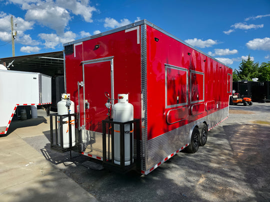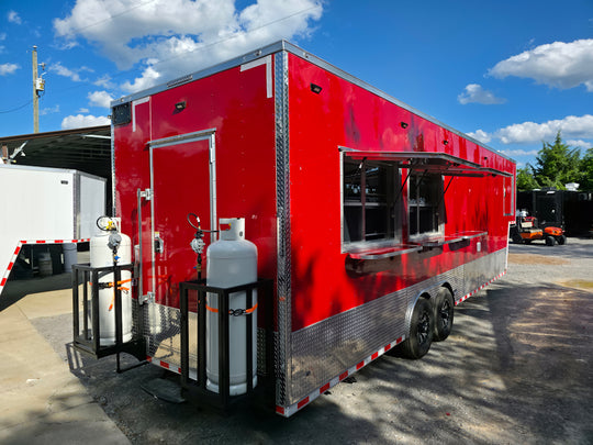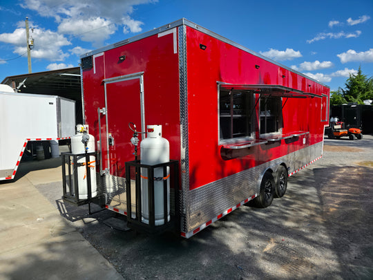 8.5 x 22 Red V-Nose BBQ Porch Concession Trailer