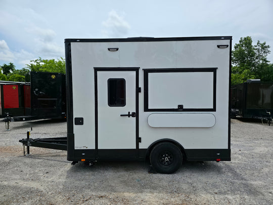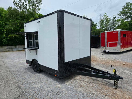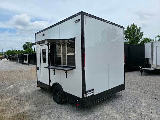 8.5' X 12' White With Blackout Concession Trailer Flat Front Event Catering