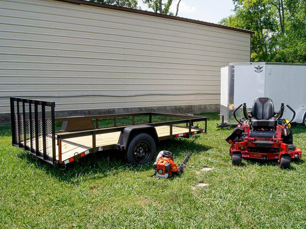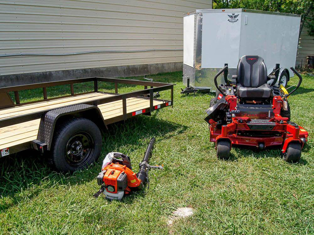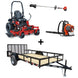 This package includes a 52-inch Toro ZMaster 2000 Series zero-turn mower with a 24.5-horsepower Toro engine, one Husqvarna 130BT backpack blower, one 128LD straight-shaft string trimmer, and a 5-foot by 10-foot utility trailer.