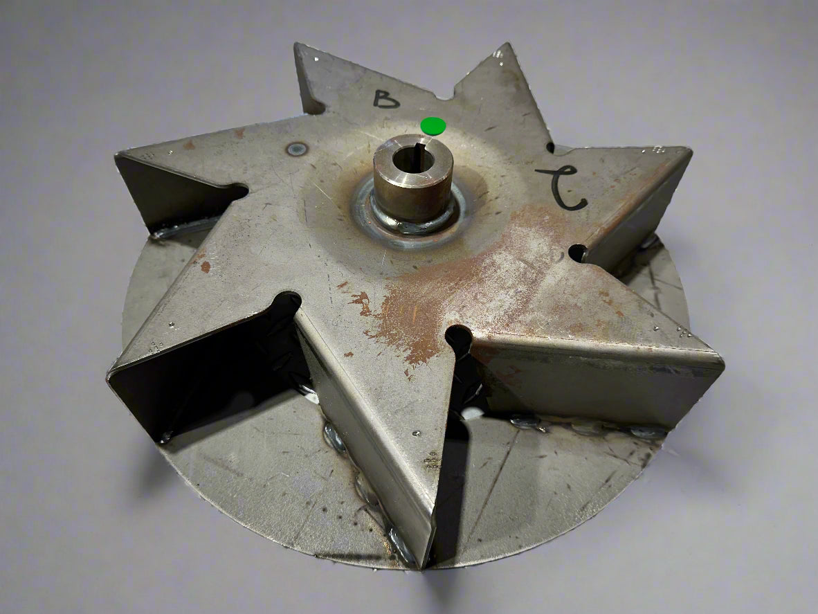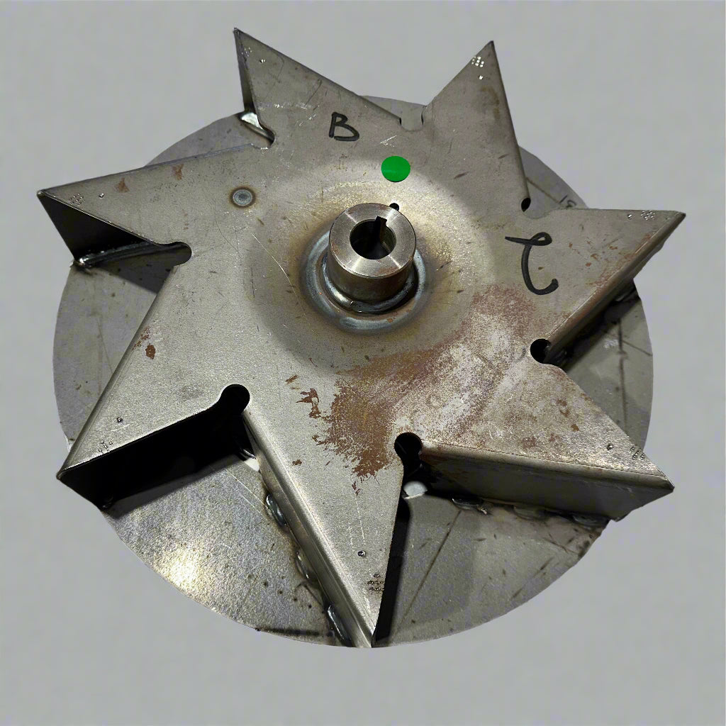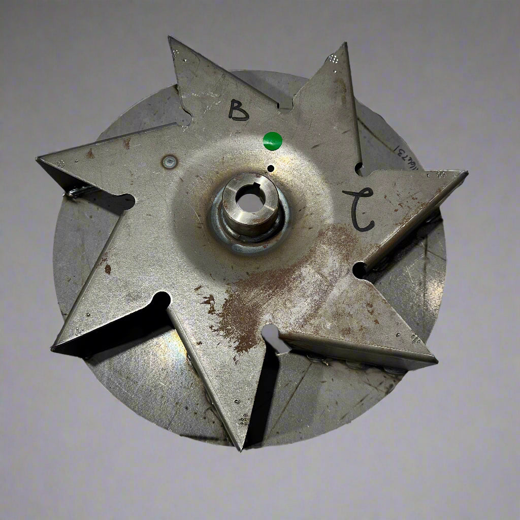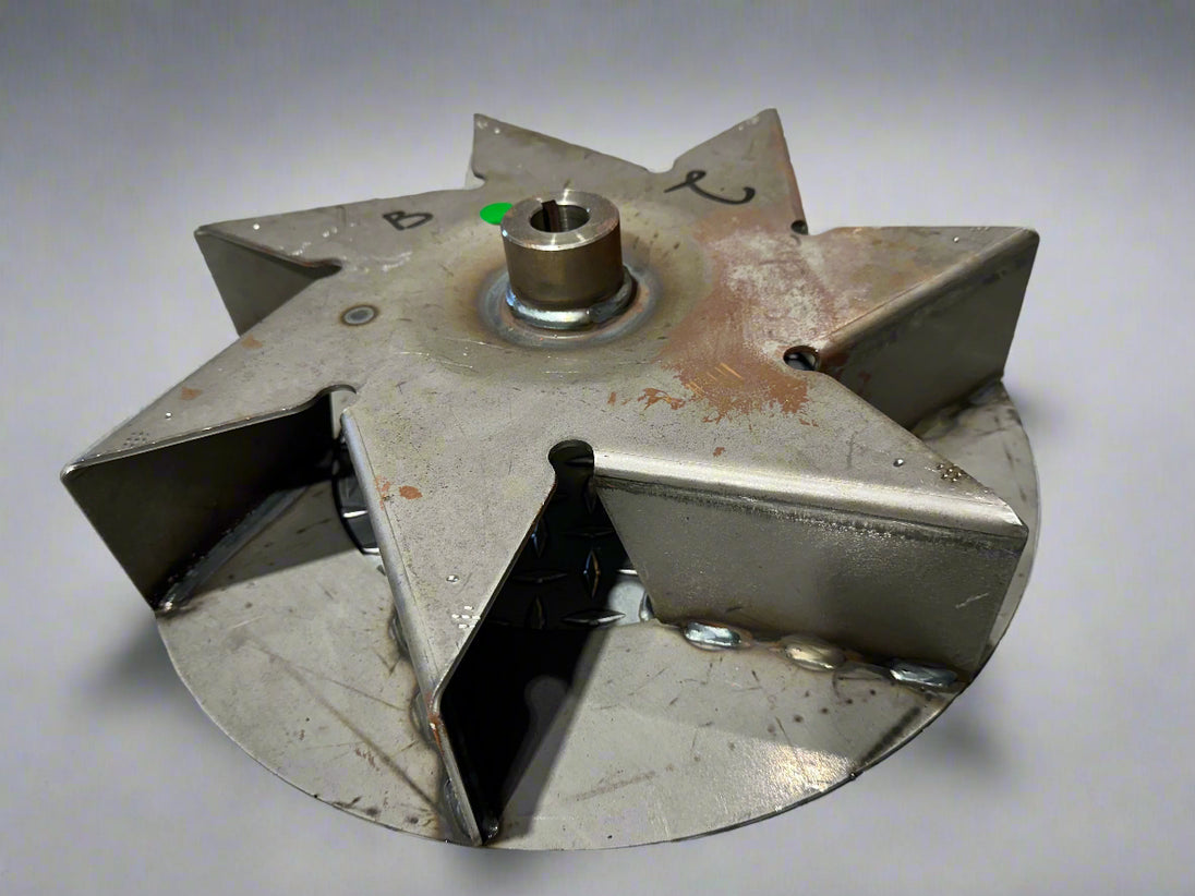 This genuine OEM Wldmt-Fan (Part #4166731) is designed by Little Wonder, Classen, and Mantis for reliable cooling performance in 13HP/14HP equipment. Made from durable metal, it's brand new and unused, though it may show minor surface rust due to air moisture exposure. Sold as-is, this part fits Little Wonder LB390H and LB570V models and installs easily using existing hardware.