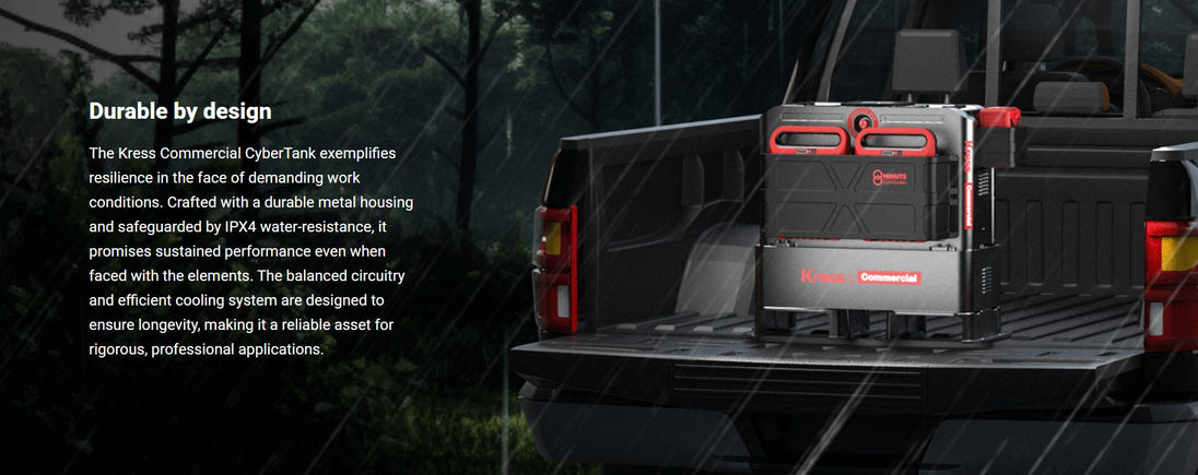 • With integrated 4G and GPS, the CyberTank provides real-time updates via the Kress Commercial app—offering fleet tracking, security alerts, and system diagnostics wherever you go.