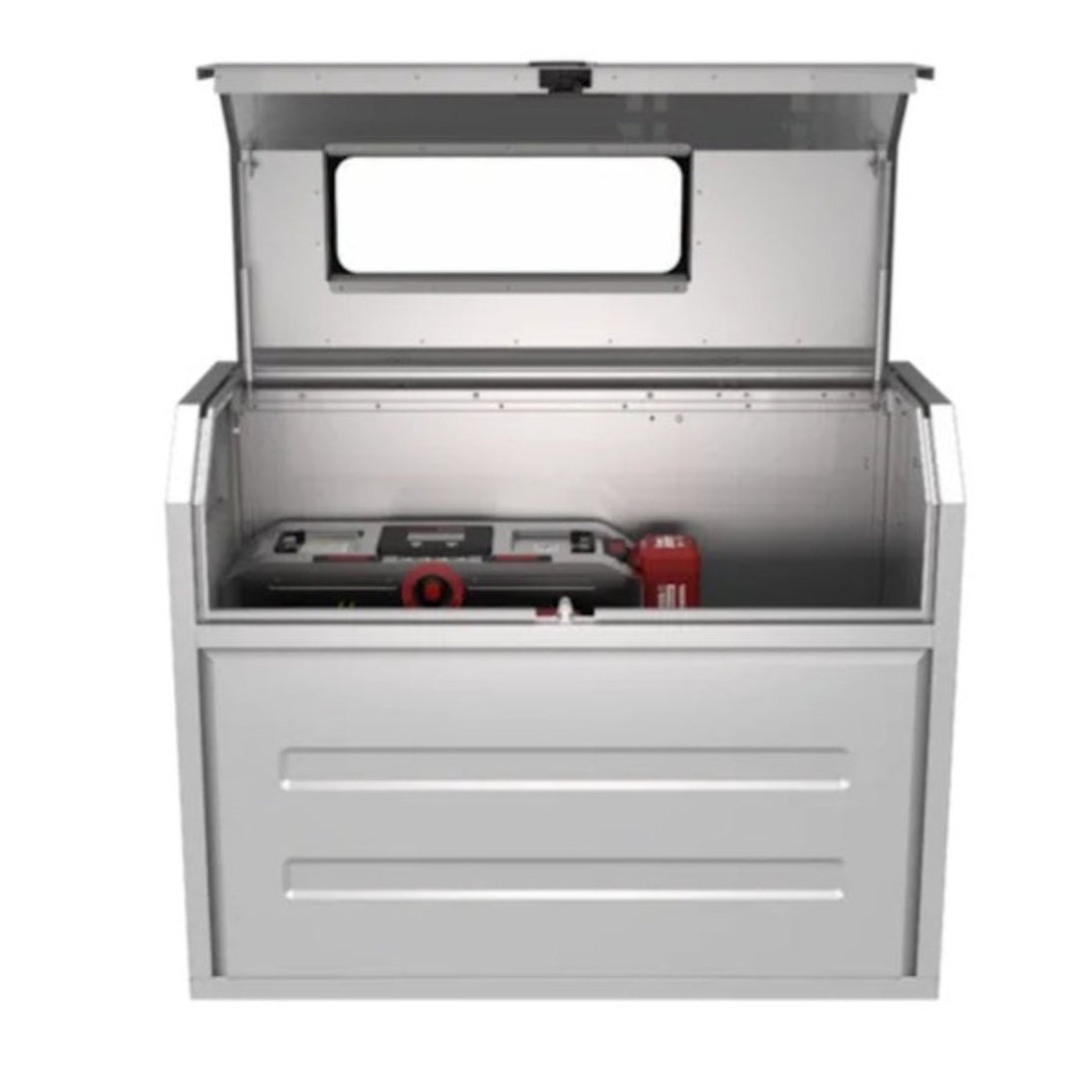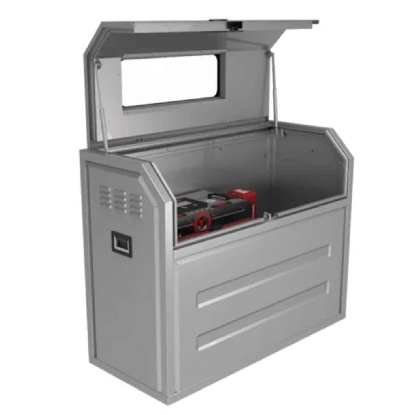 The Kress KAC929.1 CyberCabinet is a rugged, weather-resistant enclosure designed to protect KAC875L and KAC877L CyberTanks. It features a built-in heating pad to maintain optimal battery temperature, helping extend lifespan and ensure reliable performance in harsh conditions. Ideal for commercial crews working in varying climates.