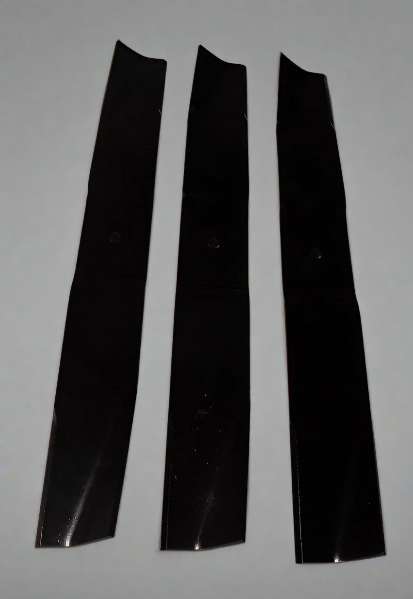 The Oregon 95-028 Lawn Mower Blades (Three Pack) are precision-engineered for most MTD 38" deck mowers, offering a reliable, high-performance replacement. Each blade features a 19-5/16" length, 3/8" center hole, and is crafted from durable steel for long-lasting strength. The pack includes three blades, making it an ideal solution for quick replacements and consistent mowing throughout the season.