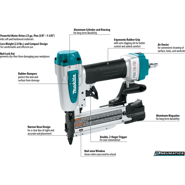 Makita AF353 23 Gauge, 1‑3/8" Pin Nailer - 65 - 100 (PSI)