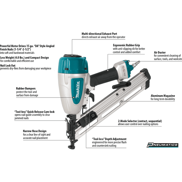 Makita AF635 15 Gauge, 2‑1/2" Angled Finish Nailer, 34⁰ - 70 - 120 (PSI)