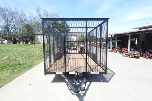 7' x 18' Tandem Straight Deck Utility Trailer 6ft Mesh Sides 7K GVWR