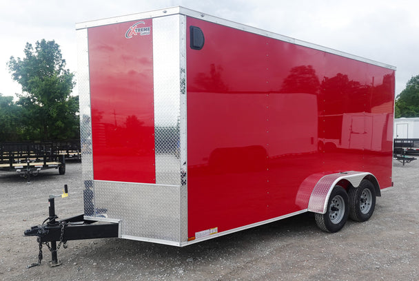 7x16 Red V-Nose Enclosed Trailer (2) 3,500lb Axles 7ft Interior