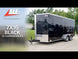 The 7-foot by 16-foot black v-nose enclosed trailer features two greaseable 3,500lb axles with brakes on the rear and has a screwed exterior. This trailer comes with a spring-assisted loading ramp and a 7-foot interior height.