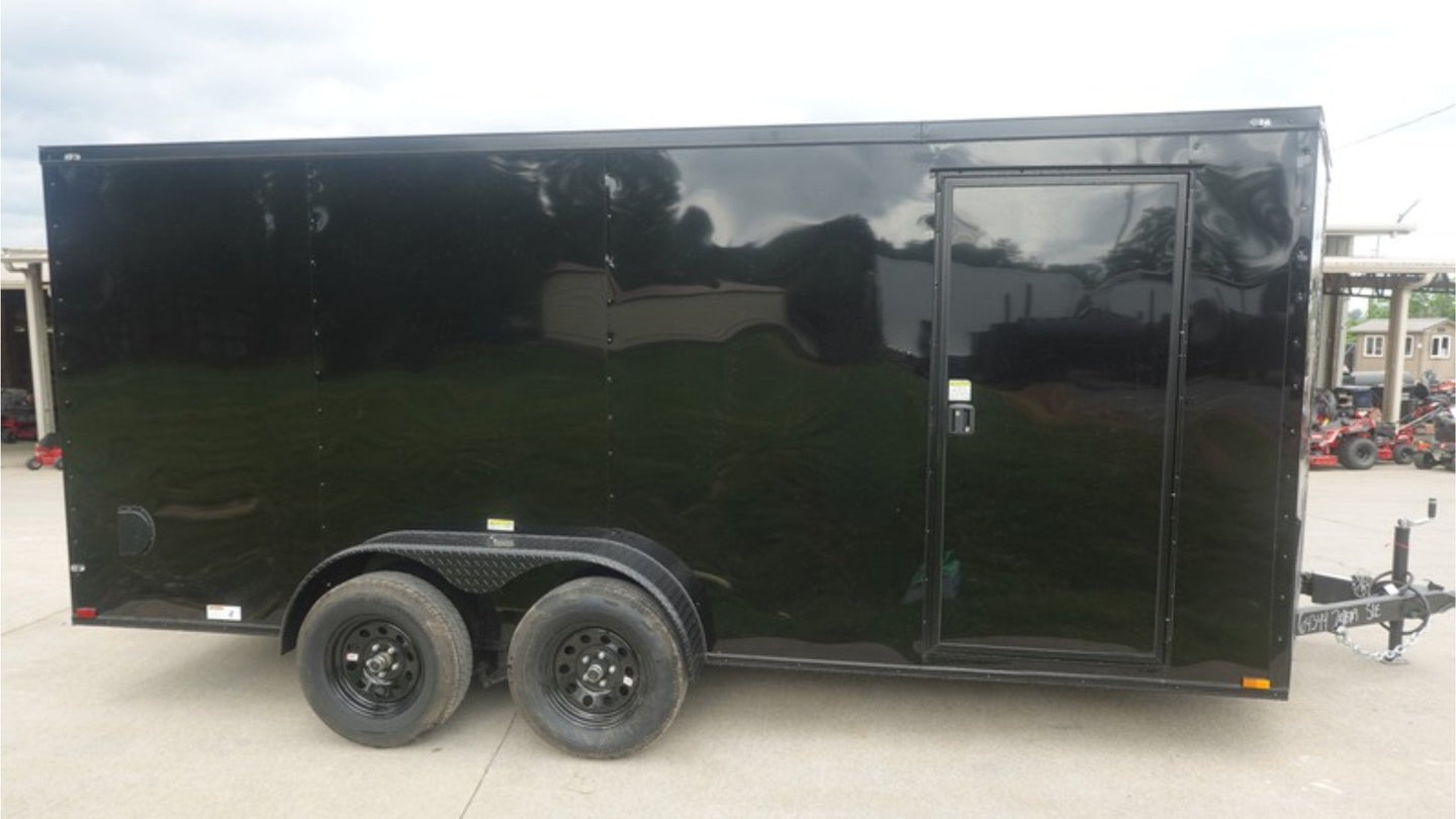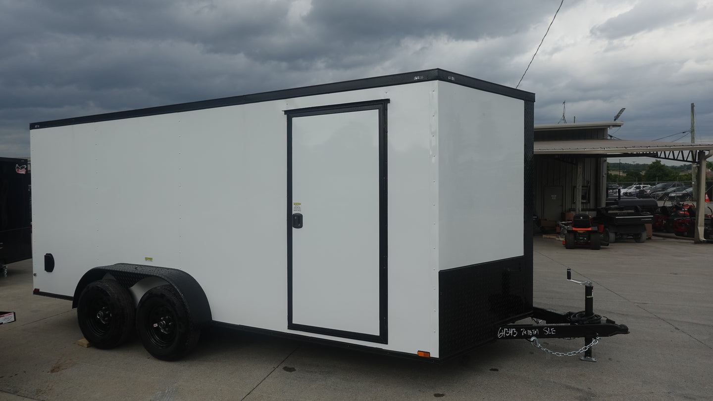 This 7x16 Enclosed V-Nose Trailer offers a reliable, durable solution for transporting cargo, tools, or recreational gear. Built with high-quality materials and designed for convenience and performance, it’s ideal for both commercial and personal hauling needs.