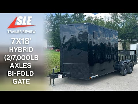 This 7x18 blackout hybrid trailer combines an 8' enclosed front section with a 10' utility deck for maximum versatility. It features (2) 7,000 lb. electric brake axles and 15" radial tires for dependable, heavy-duty hauling. The V-Nose design adds aerodynamic efficiency and extra interior space. Inside, treated plywood walls and flooring pair with built-in vents and 6'6" interior height for durable, comfortable storage. A reinforced bi-fold ramp makes loading equipment fast and secure.