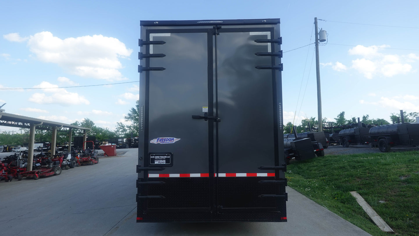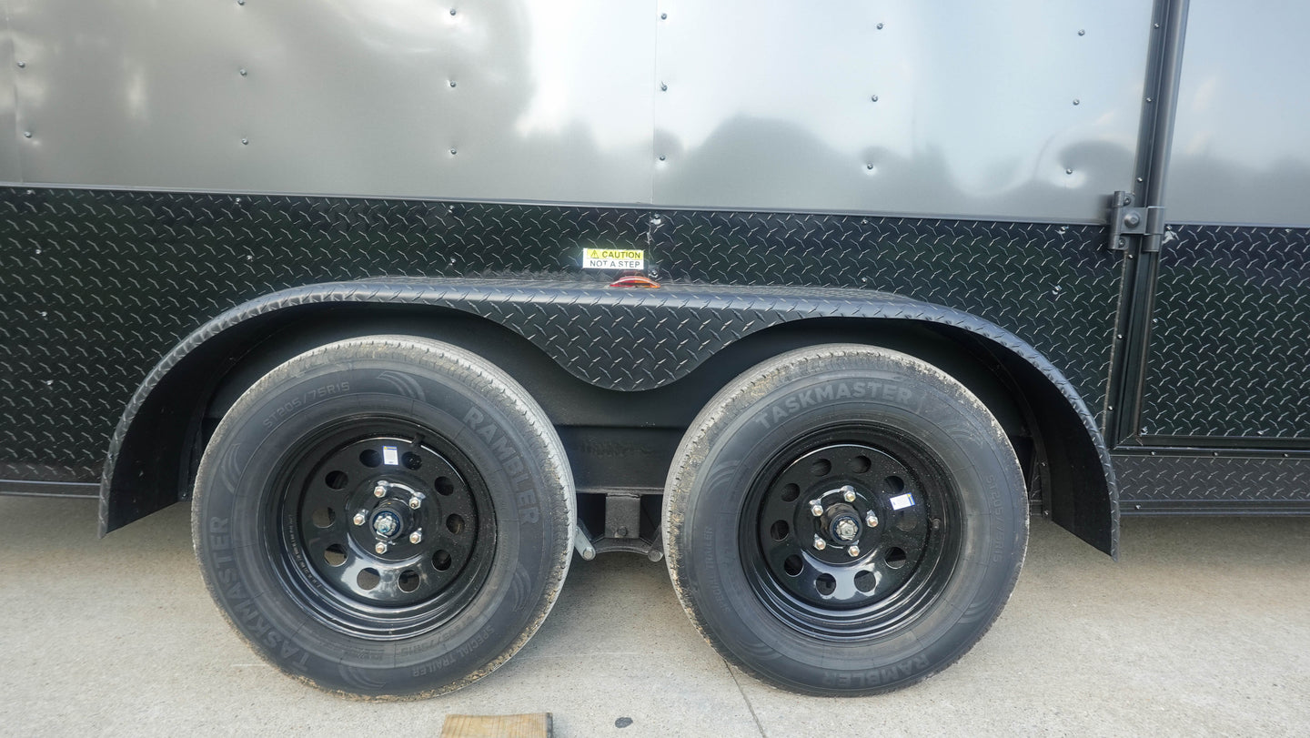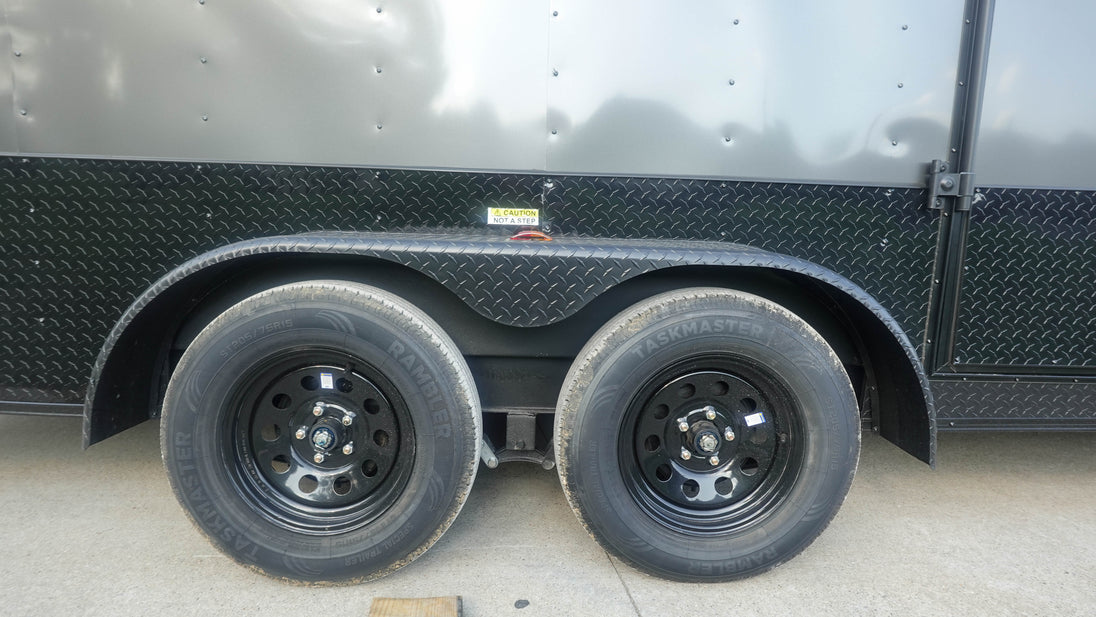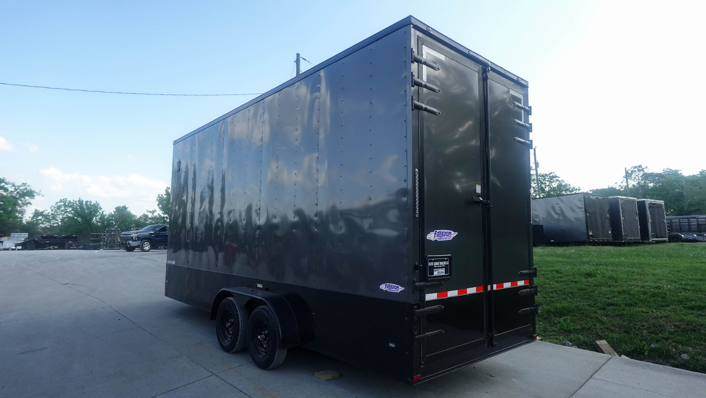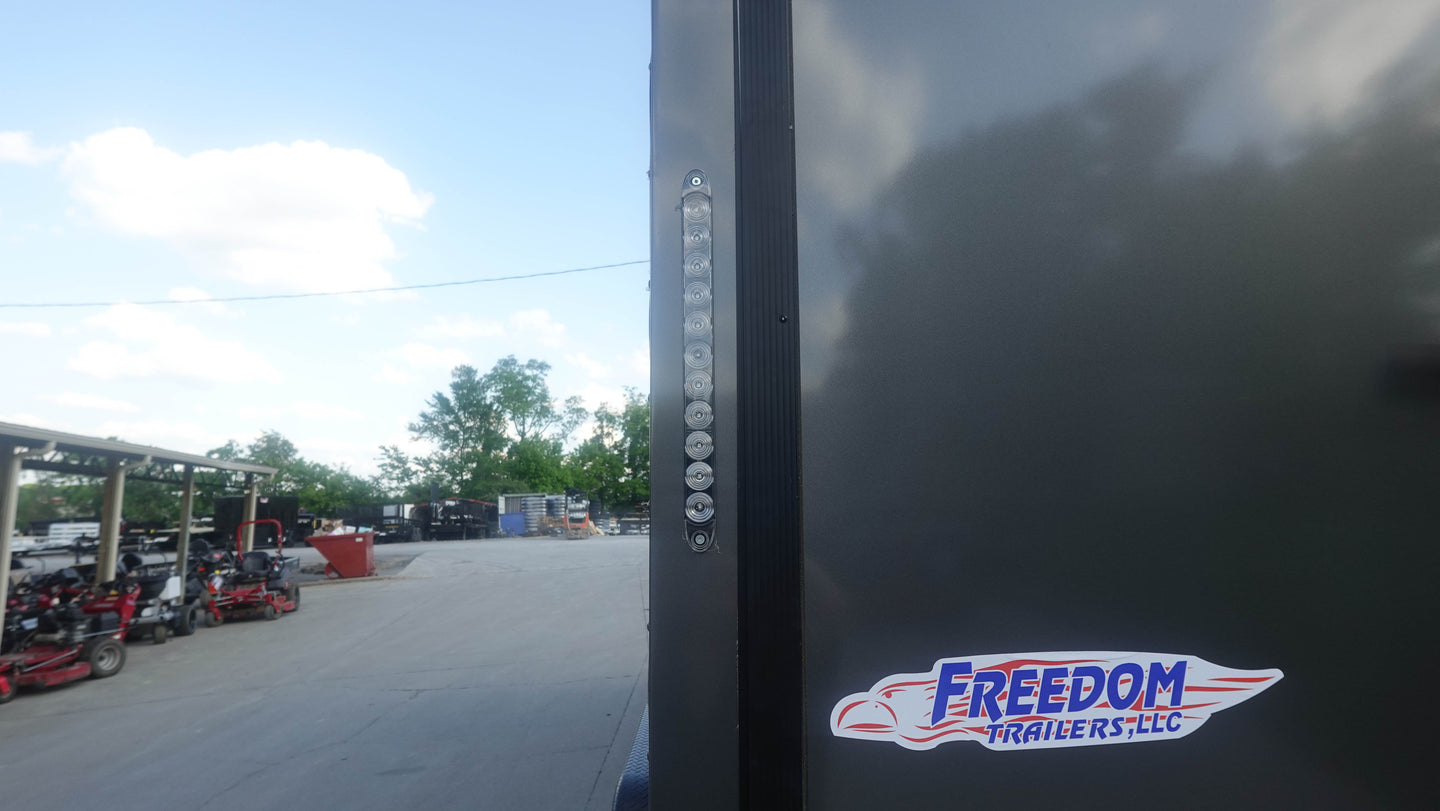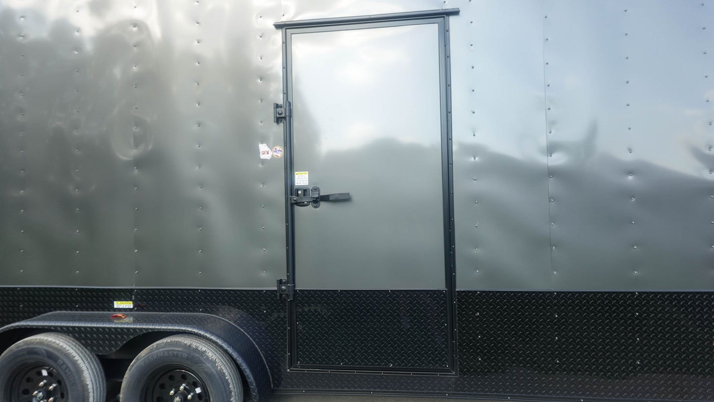 This 7x20 V-nose enclosed trailer delivers the space and strength needed for serious hauling. Featuring a sharp charcoal exterior with blackout accents and reinforced construction, it's ready for both work and weekend missions.