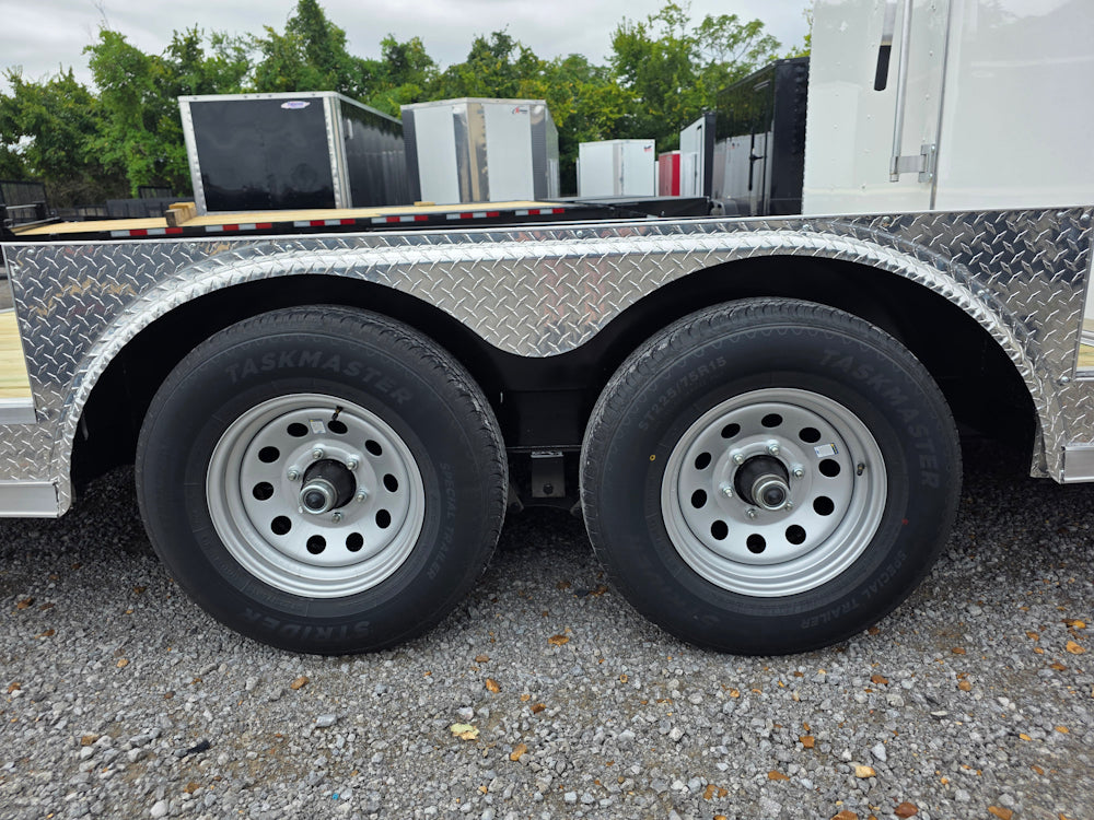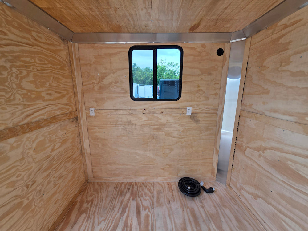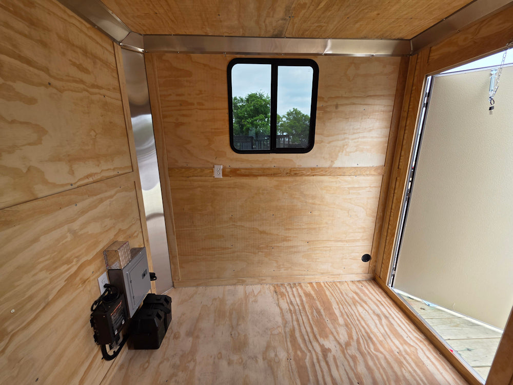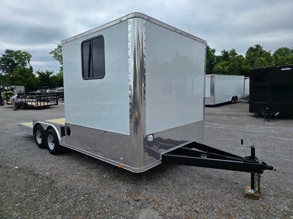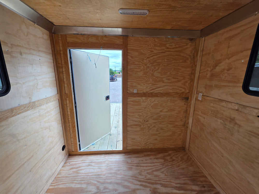 This 8.5' x 20' custom white hybrid trailer blends an 8' enclosed climate-controlled workspace with a 12' open utility deck for versatile use. Outfitted with dual 5,200 lb axles, A/C and heat, pressure-treated flooring, and a 50 AMP electrical system, it’s built for dependable performance and comfort. Features like built-in D-rings, large windows, extended tongue, and LED lighting make it ideal for hauling, mobile workstations, or event displays.