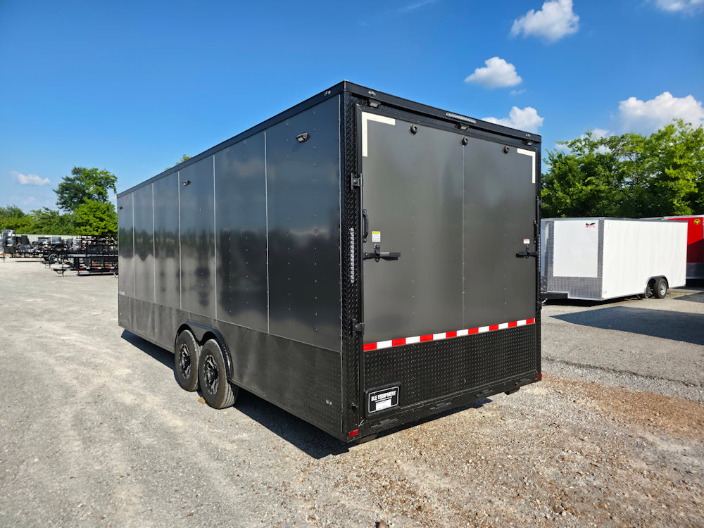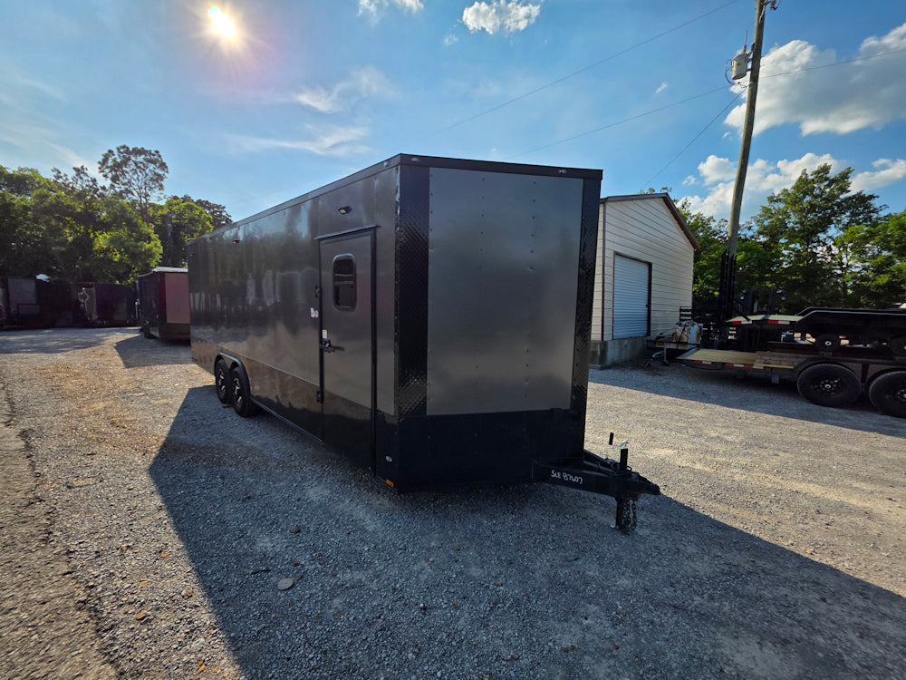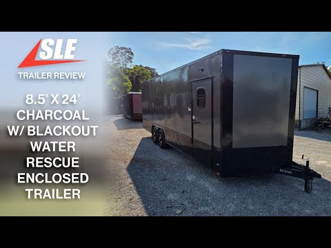This 8.5' x 24' charcoal gray blackout water rescue trailer is built for durability and field efficiency, featuring dual 7,000 lb torsion axles, a rear ramp door, and rugged mag wheels. It’s equipped with a 50 Amp electric package, A/C and heat, aluminum countertops, upper cabinets, and both interior and exterior LED lighting for optimal visibility. Designed specifically for emergency and water rescue teams, it offers reliable performance, secure storage, and mobile readiness when every second counts.