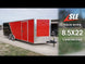 Enclosed trailer that measures 8.5 ft. by 22 ft. and is red and black. It features an interior height of 6 ft. 6 in., 22 ft v-nose design, interior dome light and more.