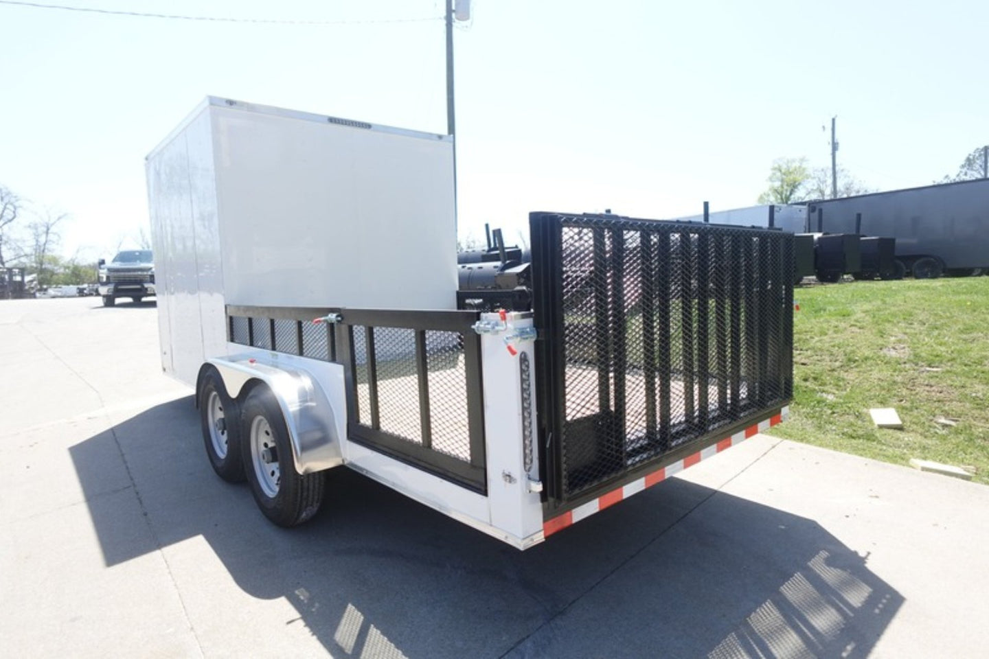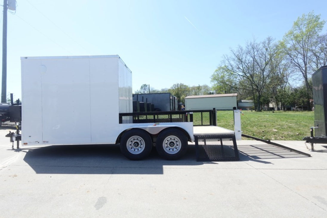 This 7x18 hybrid trailer is built tough and designed for versatility, combining an 8ft enclosed box with a 10ft open utility deck—perfect for transporting equipment, tools, and more. With a clean white exterior and silver trim, it offers a sharp look, while the pintle hitch ensures secure, heavy-duty towing.