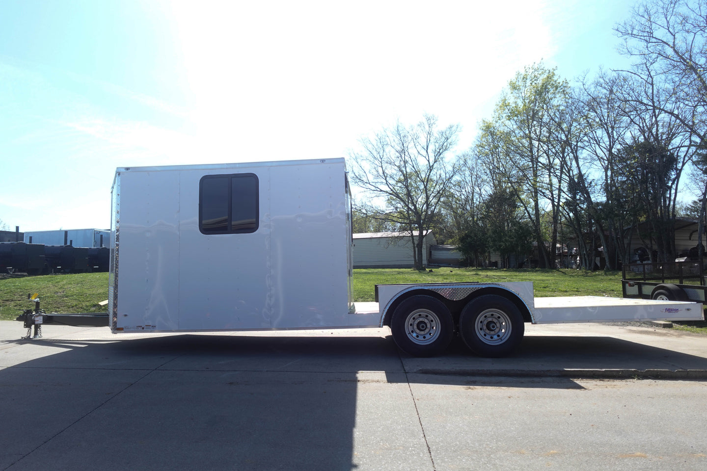 8.5x24 White Hybrid Enclosed V nose (2) 7K axles (2) 30x30 Windows with Pintle Hitch