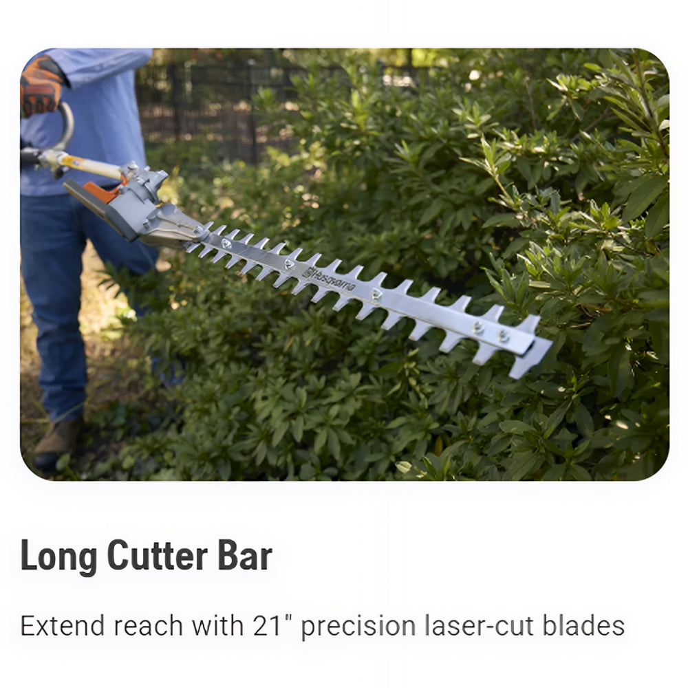 The Husqvarna 122LKH Hedge Trimmer delivers powerful performance with a 0.8 hp engine, high RPM speed, and optimized fuel efficiency for precise cutting. Its 21.075-inch cutter bar and wide teeth opening ensure effective trimming, while the lightweight design and low vibration levels provide superior comfort and control. Designed for quiet operation with reduced emissions, this hedge trimmer is an eco-friendly, high-performance solution for professional and home landscaping needs.