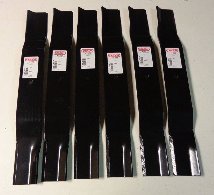 Set of 6, 20-1/4 in. lawn mower blades. It fits Toro-Wheelhorse lawn mowers with a 7/16 inch hole.