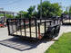 The 6.4' x 12' dovetail utility trailer features dual 3,500 lb name-brand axles, 2ft mesh sides, LED lights, diamond plate fenders, tie-downs, Ram jack, and pressure-treated wood flooring.