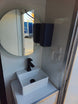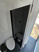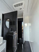 • Sophisticated Interiors: White aluminum walls with contrasting black aluminum stall dividers add a stylish touch.