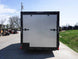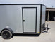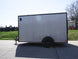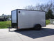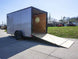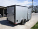 The silver 7-foot by 12-foot V-nose enclosed trailer comes with blackout detail and measures an interior height of 6 feet. It comes with a single 3,500lb axle and spring-assisted, rear-loading ramp.