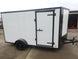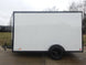 The white 7-foot by 12-foot V-nose enclosed trailer comes with blackout detail and measures an interior height of 6 feet. It comes with a single 3,500lb axle and spring-assisted, rear-loading ramp.