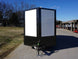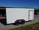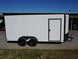 7x16 White V-Nose Enclosed Trailer with Blackout Package offers durable construction, dual 3,500lb axles with brakes, spring-assisted rear ramp, side door access, LED lighting, and 7' interior height for versatile and secure hauling.