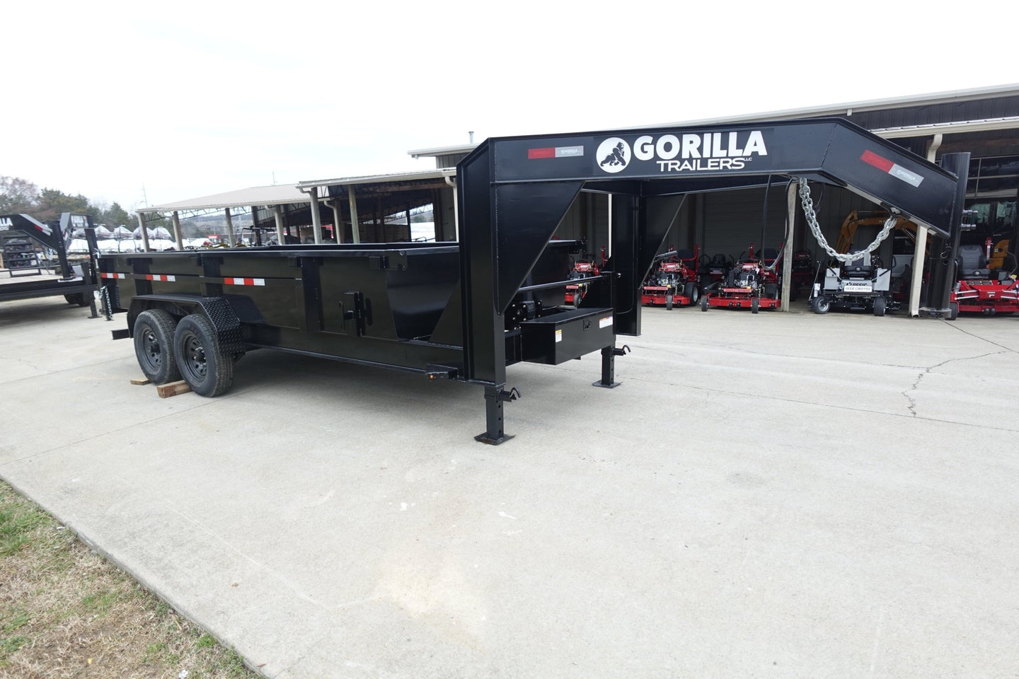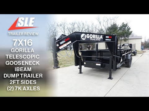 The 7-foot by 16-foot Gooseneck Gorilla Telescopic Dump Trailer features a robust I-beam frame and 2-foot high sides, delivering outstanding strength and a generous capacity for demanding hauling tasks. It is equipped with two greaseable 7,000lb axles and dual slide-out loading ramps, ensuring smooth operation and efficient loading and unloading. Enhanced by a powerful single telescopic hydraulic cylinder, this trailer offers exceptional dumping leverage, making even the most challenging tasks effortless and precise.