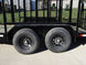The 7x16 dovetail utility trailer features two 5,200 lb greaseable Lippert axles with electric brakes, a breakaway system, and a reinforced folding gate. Its wrap-around tongue and angle iron frame deliver strong, lasting performance. The trailer includes 6-foot mesh sides, ladder racks, and pressure-treated pine decking, plus six built-in tie-downs, a spare tire holder, and Optronics lifetime LED lighting. It’s powder-coated by Sherwin-Williams and finished with diamond plate fenders. Equipped with jack, coupler, and safety chains.
