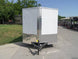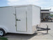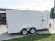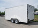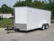 The 7-foot by 16-foot white v-nose enclosed trailer with an electrical package comes with two greaseable 3,500lb axles and a 50 AMP electrical package. This trailer has a spring-assisted loading ramp and an extended tongue.
