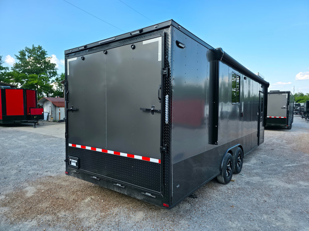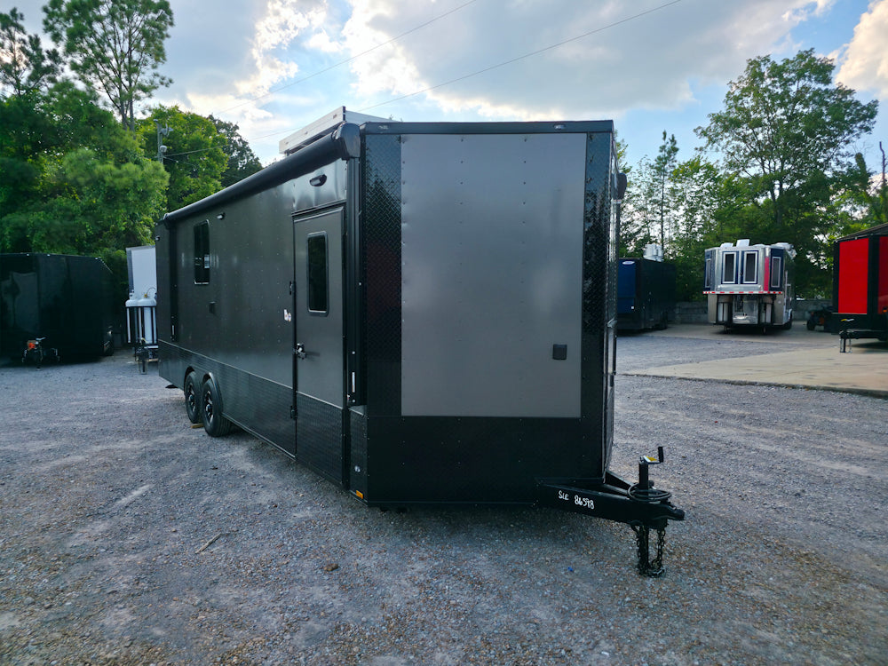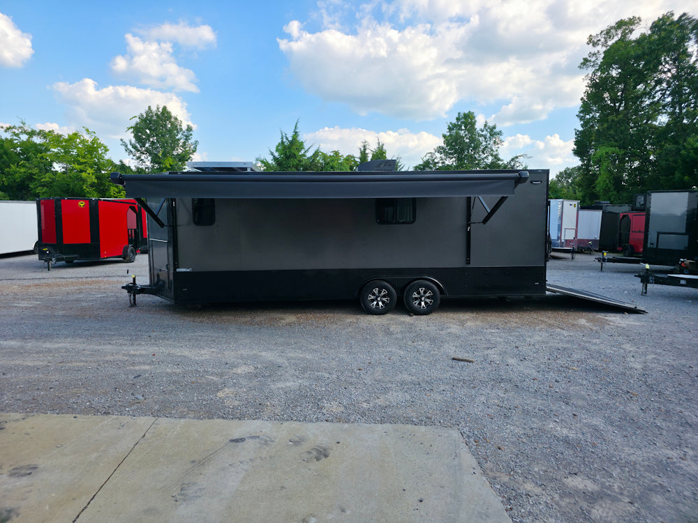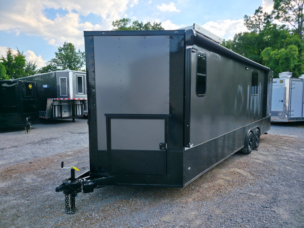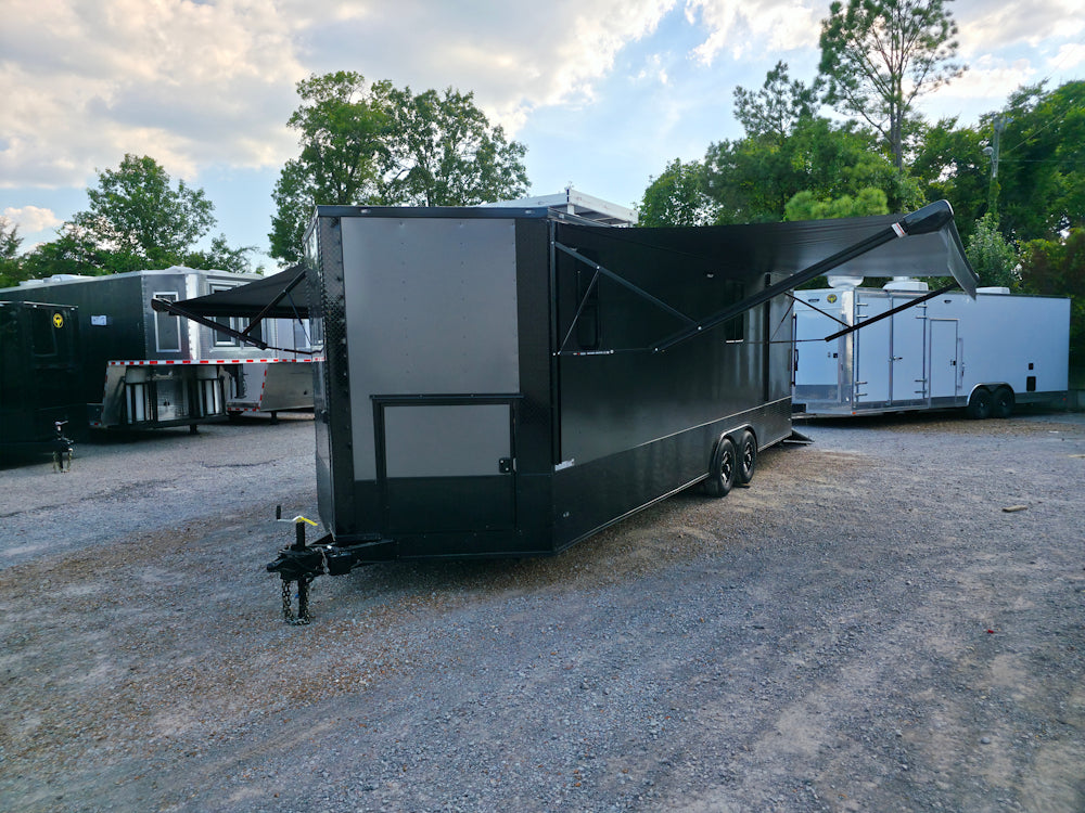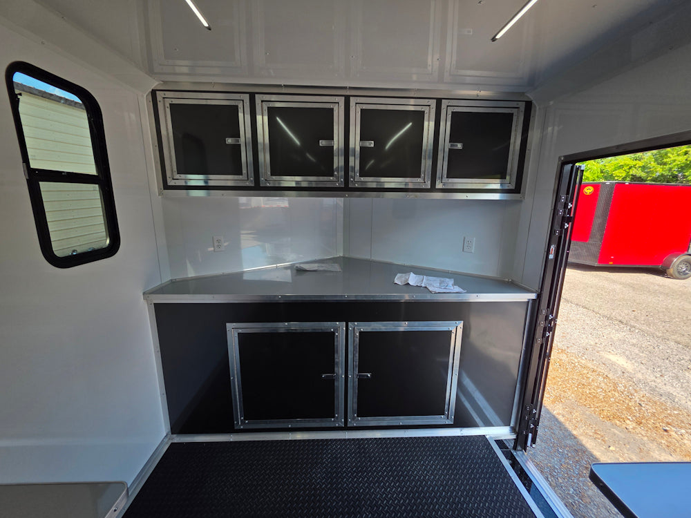 This 8.5' x 24' custom mobile command and office trailer is built for professional field operations, with a 7.5' interior height, dual 5,200 lb torsion axles, and a rear ramp door for easy access. It features a 100 Amp electric system, A/C and heat package, aluminum countertops, upper and base cabinets, and a 4' x 8' observation deck. Designed for versatility and durability, it’s ideal for emergency response, mobile offices, and tactical deployments.