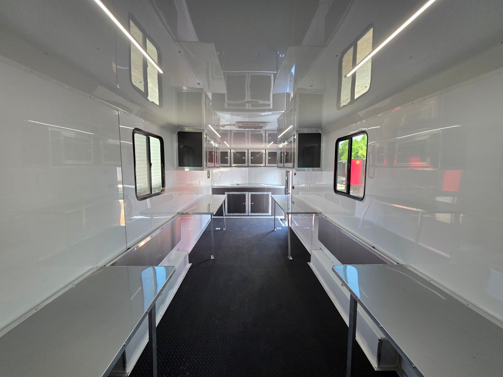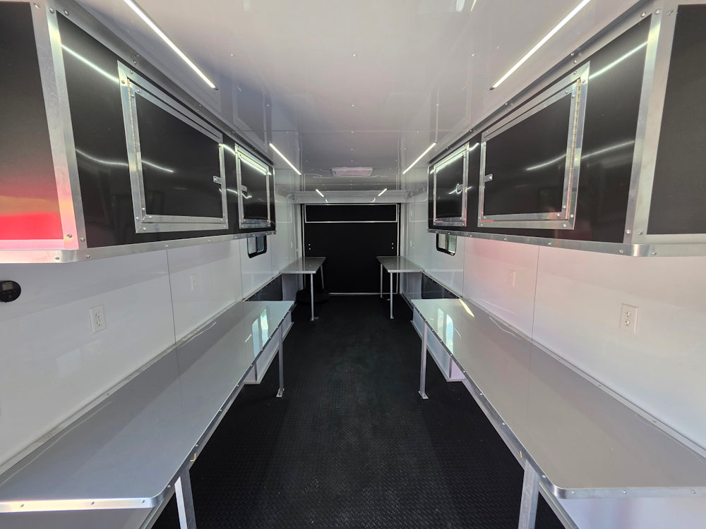 39' 4" of fold-down aluminum countertops – rugged, clean, and ideal for laptops, gear, or documentation